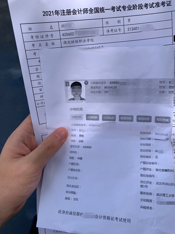 市民杜先生介绍,他9月20日上午要参加2021年注册会计师全国统一考试,可当日凌晨1点左右,杜先生才发现,自己的身份证不见了。上午7点,焦急的杜先生赶到武昌白沙洲湖北财税职业学院考点,向考点工作人员说明情况。工作人员表示,没有身份证不能参加考试,但考生可前往就近的公安派出所,办一个临时身份证明,凭临时身份证明可以参加考试。