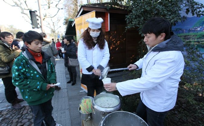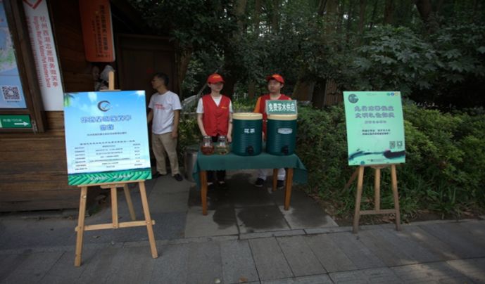 苏堤南口微笑亭每天上午10:00免费发放凉茶。从“爱心馒头”到“暖心年糕”、“浓情汤圆”,再到“清青团子”,花港管理处通过传统佳节让每个来杭州旅游的人,感受花港温度,感受中华传统文化。