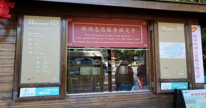 自杭州西湖文化景观列入世界遗产名录以来,西湖风景名胜区管委会积极推进“微笑亭”建设。苏堤志愿服务微笑亭中陈列了《杭州西湖文化景观知识读本》、《西湖十景》、《西湖诗词》等西湖文化知识读本、景区景点宣传资料、导览册。同时通过西湖志愿者的耐心讲解、咨询服务、交通引导等服务,游客可以较为系统地了解到西湖文化景观知识、景区景点的分布等。