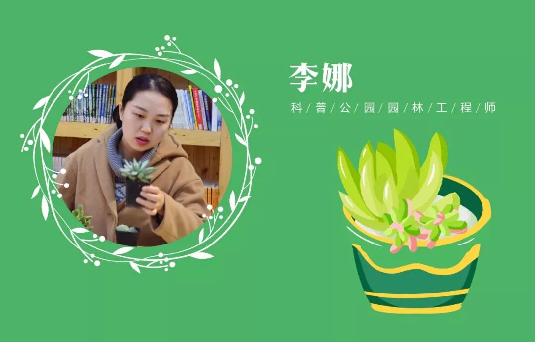 她是科普公园的李娜,从事植物研究工作四年多了。大学所学专业属于园艺范畴,毕业后就自然的从事与此相关的工作。她的工作职责是进行课题研究,最擅长养护多肉植物,连续两年担任植物导师课的植物导师。