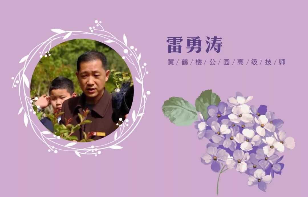 他是黄鹤楼公园的雷勇涛,先后在园林、绿化监督等部门工作,连续三次参与武汉市组织园林技能大赛两次获得优胜奖,一次获得全市园林行业“十佳技术能手”称号,多次在全市切花比赛中获得二等奖和三等奖,多次在市局组织的精细化养护管理比赛中获得第一名。
