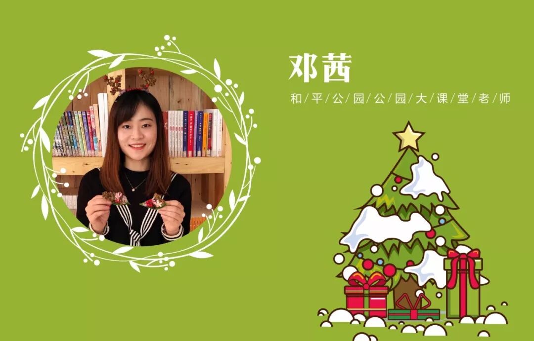 她是和平公园的邓茜,从事公园大课堂、活动策划、市民园长等相关工作,今年6月参加自然研学导师第二期培训。她是一位心灵手巧的手工、绘画达人,能够将植物与绘画、手工结合制作出很多优秀的作品,也能从课堂中给孩子们带来快乐的90后少女。