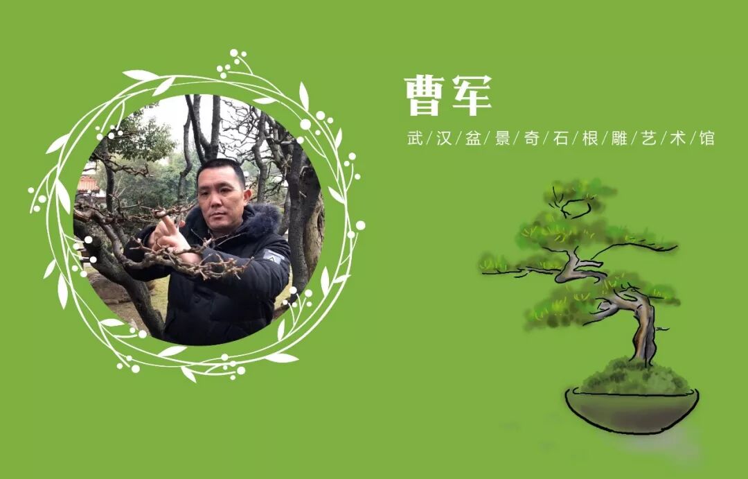 他是武汉盆景奇石根雕艺术馆的曹军,走上盆景艺术这条路已经30个春秋,一路走来从刚开始对盆景自然奇特之美的单纯吸引,到现在对盆景生命之美的迷恋和沉醉,使他与盆景结下一生的缘分。也从一名盆景工到现在武汉盆景园主管盆景创作生产的主任,技术上的骨干。