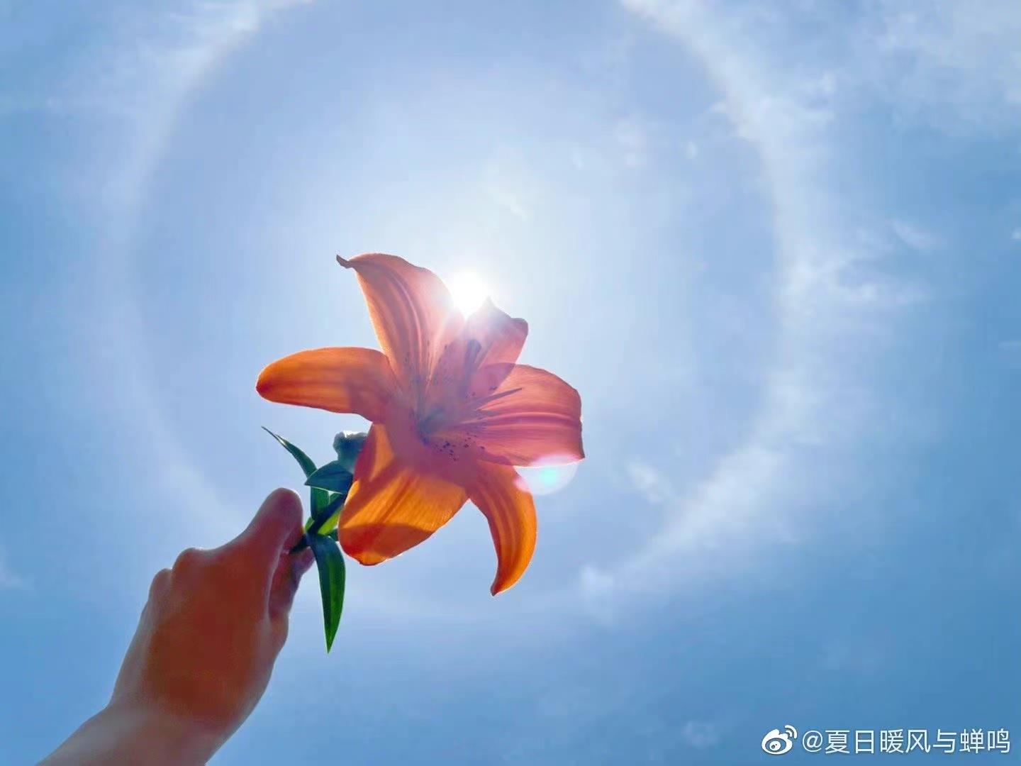 拿起手边的鲜花与日晕合影留念