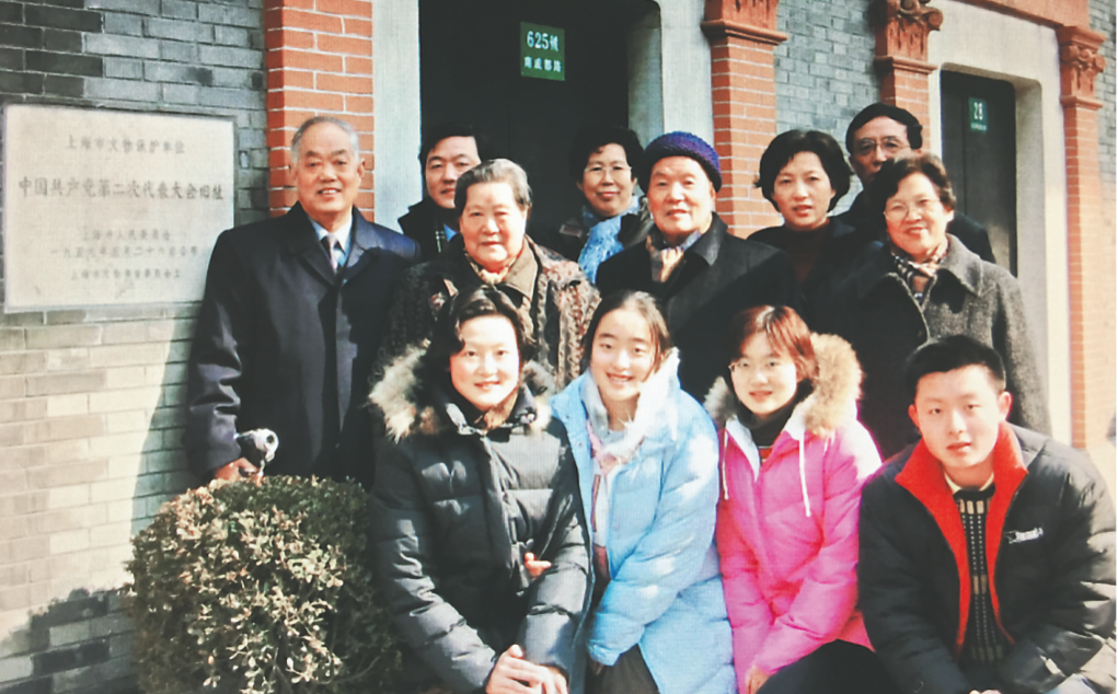 王明华(后排左一)与家人参观中共二大旧址时合影。