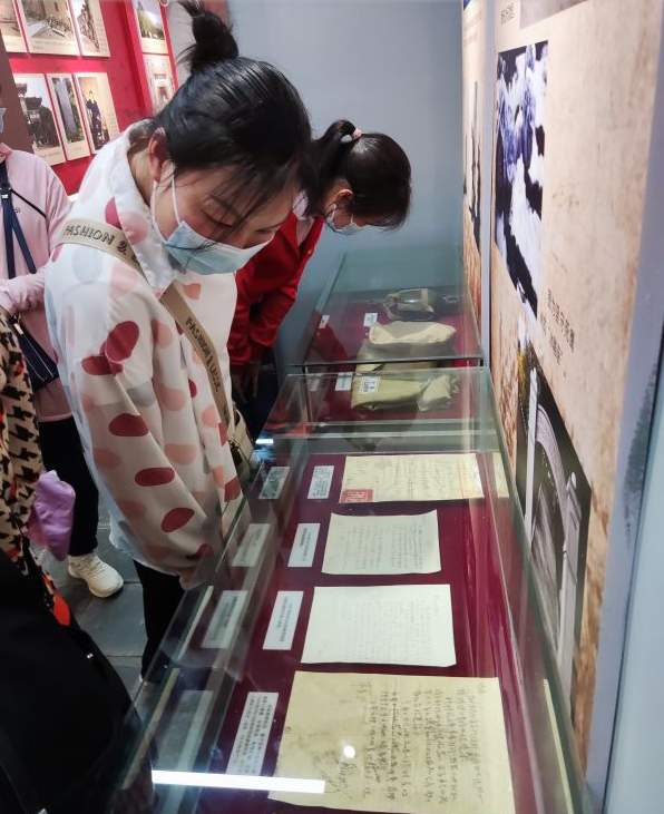 在思政课上,10名党员老师首先举起右手重温入党誓词,然后在讲解员的带领下,分别参观了刘天元、周德顺、陶子玉、洪定泰4位革命烈士展室。“等革命胜利后儿子坐火车回来看您”,这封“沙家浜”团团长洪定泰烈士写给母亲充满革命情怀的的家书字字动情,吸引党员们驻足。当得知洪定泰烈士13岁参加革命,没有正式上过学还能写出这么工整的家书,他们感到无比敬佩。