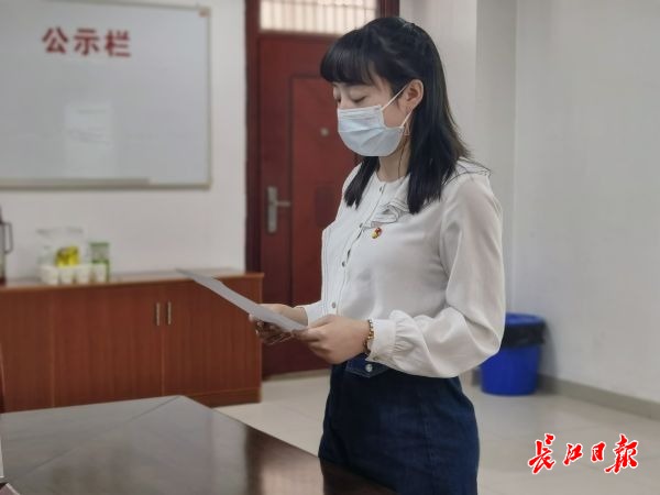 武汉市第二初级中学教师代表发言。长江日报记者向洁 摄