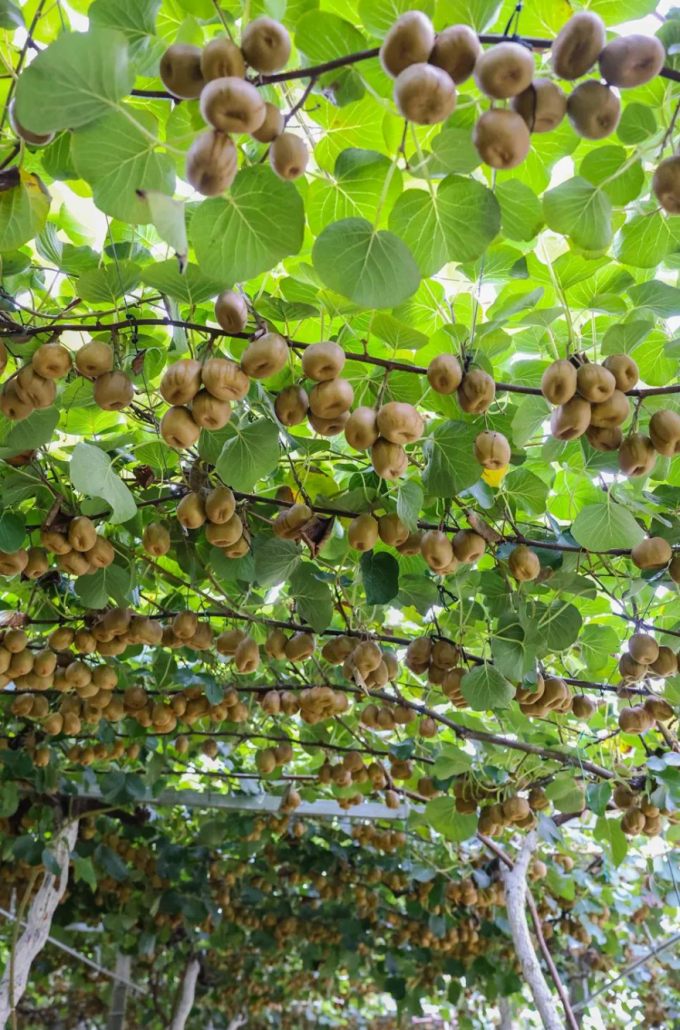 咸宁,茂盛的藤蔓顺着树干蜿蜒而上,一颗颗成熟的猕猴桃挂满枝头,令人垂涎欲滴,一派硕果累累的丰收景象。