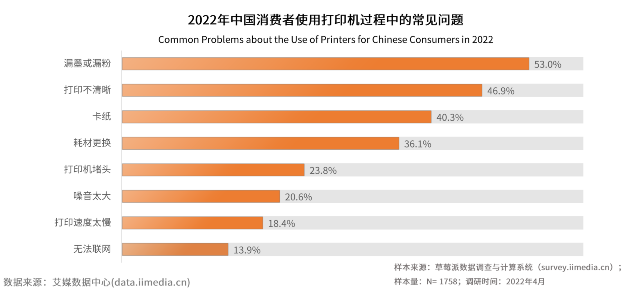 2022年中国消费者使用打印机过程中常见问题。图片由企业提供