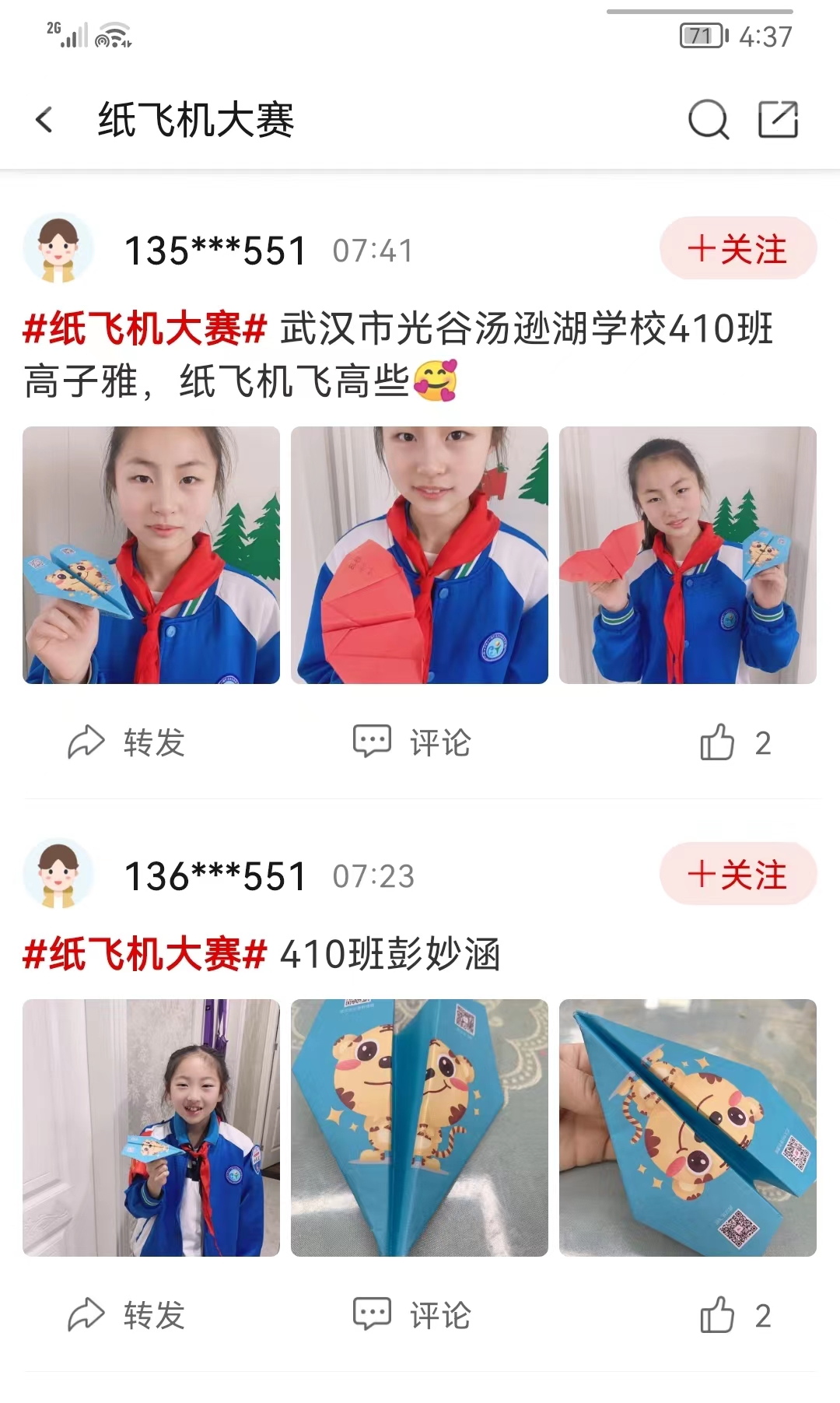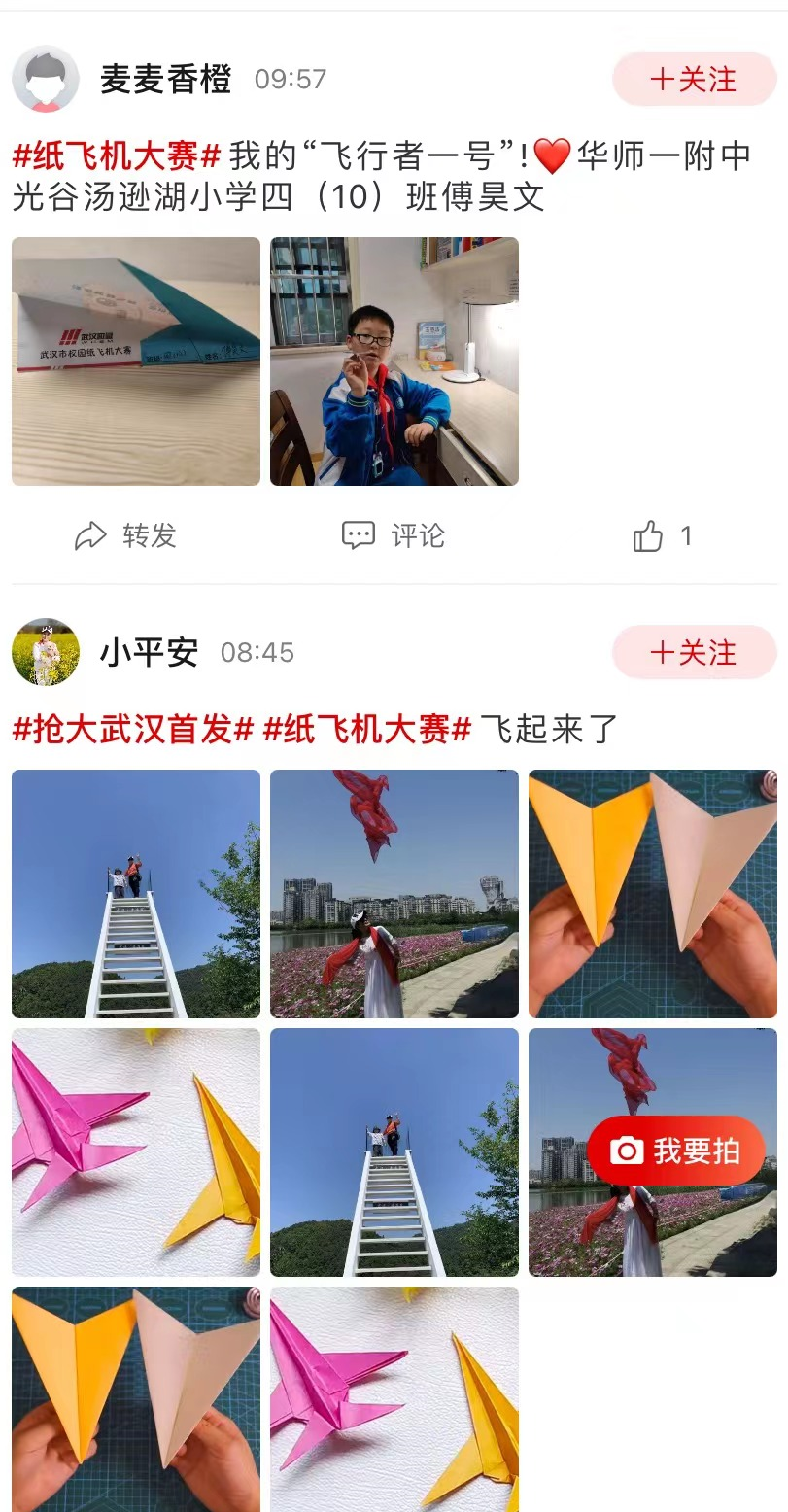 “我的‘飞行者一号’!❤华师一附中光谷汤逊湖小学四(10)班傅昊文。” ——@麦麦香橙
