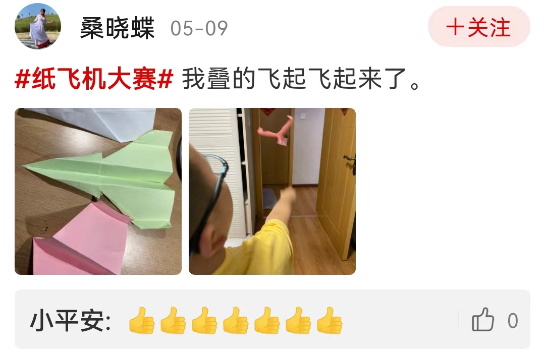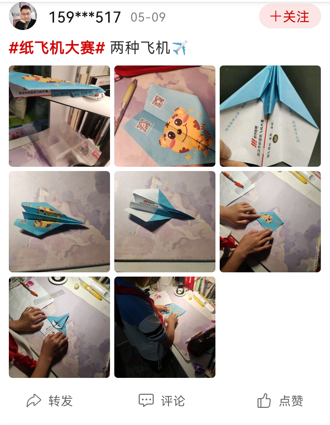 “我做了蝙蝠飞机、圆筒飞机和纸飞机。”——@180***790