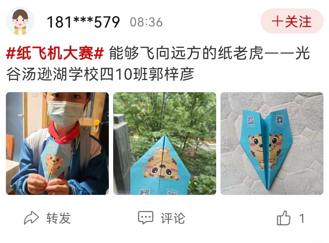 “能够飞向远方的纸老虎——光谷汤逊湖学校四(10)班郭梓彦” ——@181***579