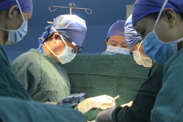 陶凉(左二)在手术中。本人供图