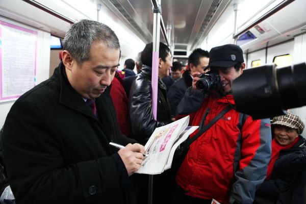 中国首条过江地铁——武汉2号线建成通车时,熊朝辉乘坐地铁。 通讯员刘丰供图