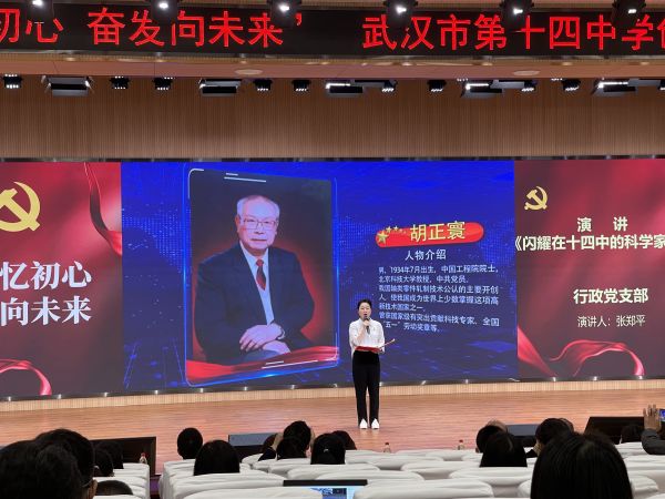 创意主题党日活动也围绕着“红色校史”展开。在演讲《修身报国——走进十四中的青年学子》中,肖华老师声情并茂地呈现出了百年前十四中青年学子,为挽救民族危亡而所进行的不懈努力,她着重讲述了陈潭秋、董必武二人为宣传革命、教育青年,创办私立武汉中学的历史故事。