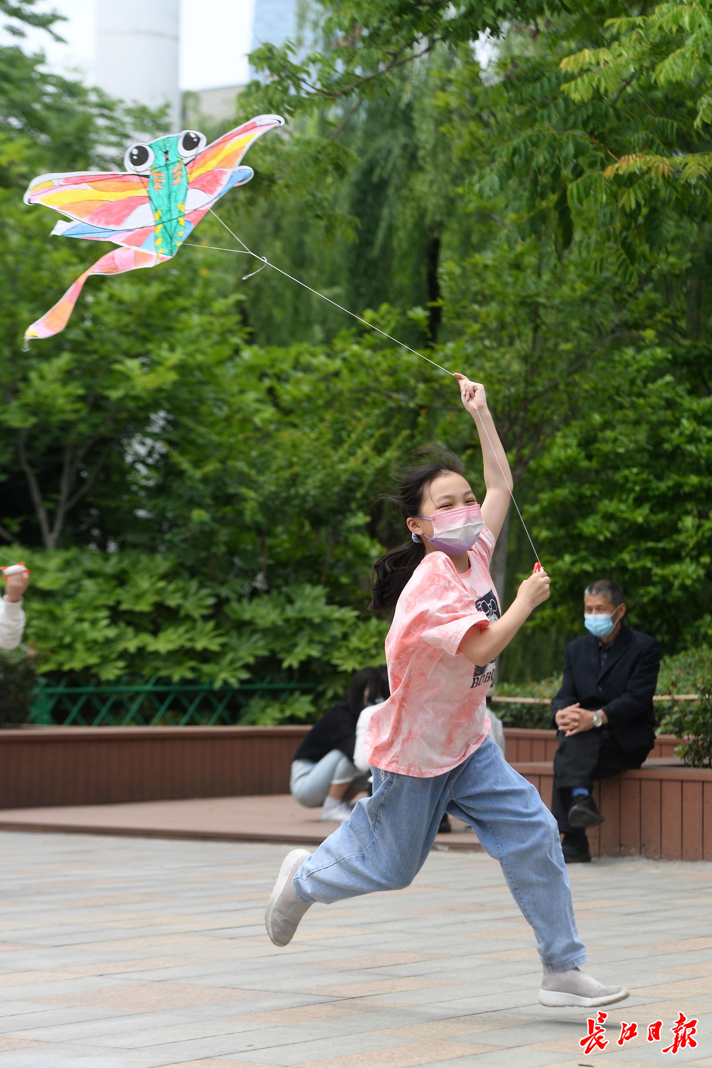 小朋友举着风筝在公园里欢快奔跑。记者周超 摄