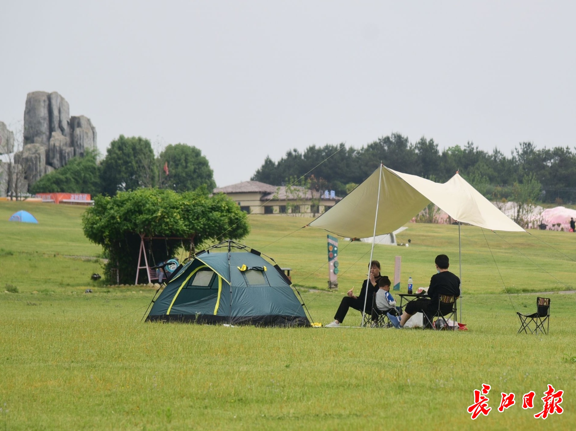长江日报大武汉客户端5月15日讯 5月15日,武汉市天气转晴。趁着风和日丽的好天气,许多市民带着家人纷纷来到郊区游玩。在黄陂区木兰草原,市民在草地上搭起帐篷,在青山秀水之间尽情享受惬意周末。