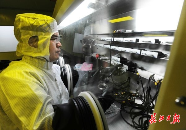 武汉尚赛光电科技有限公司OLED提纯实验室,王磊博士正在工作。 记者高勇 摄