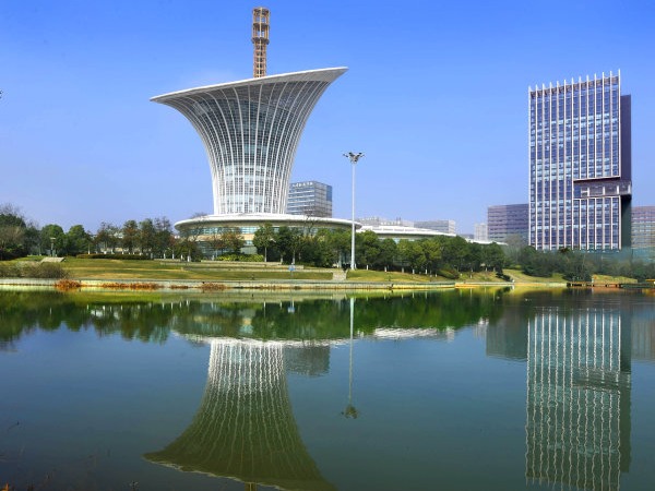 武汉光谷未来科技城的仿生建筑“马蹄莲”。 记者高勇 摄