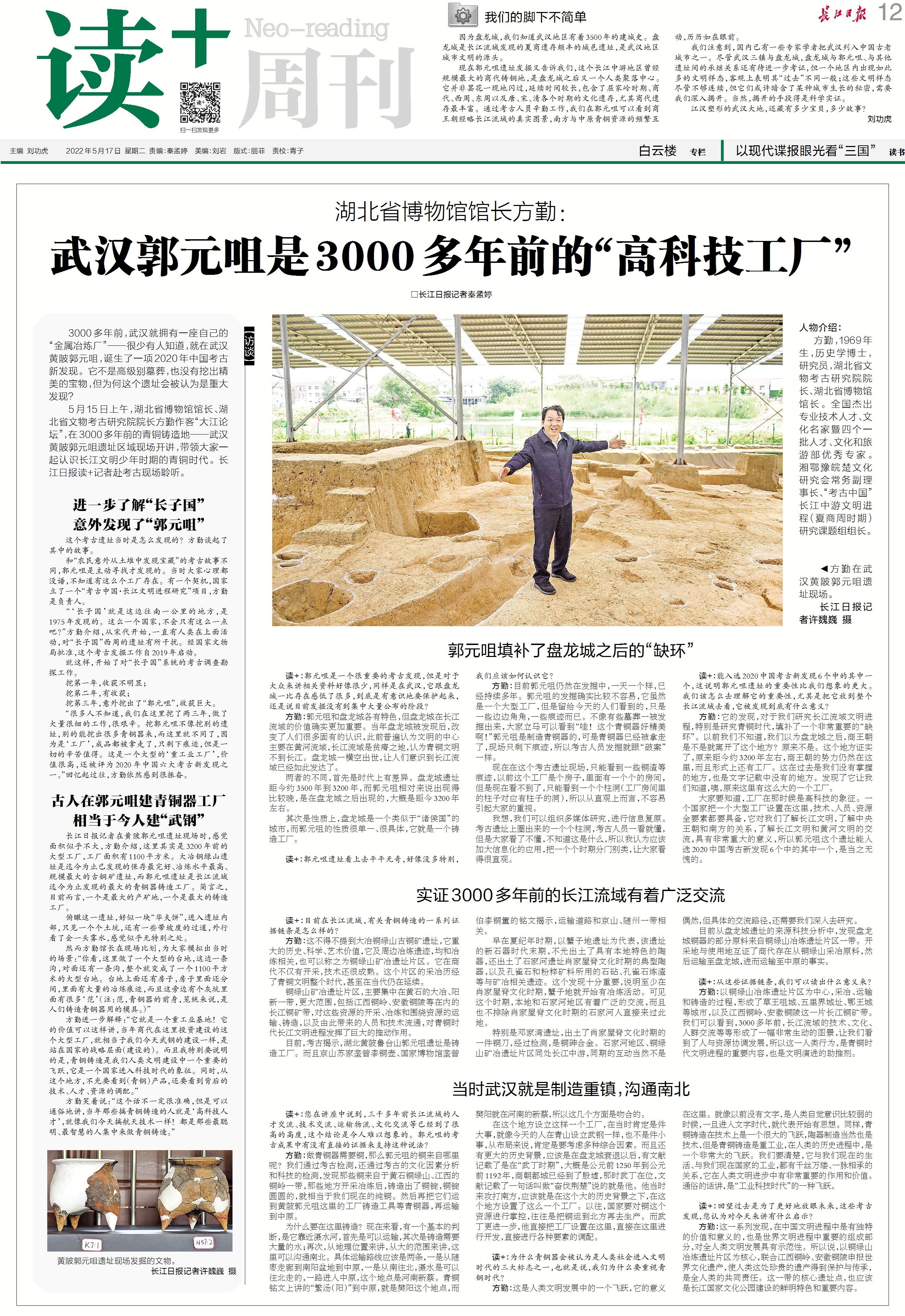 5月15日上午,湖北省博物馆馆长、湖北省文物考古研究院院长方勤作客“大江论坛”,在3000多年前的青铜铸造地——武汉黄陂郭元咀遗址区域现场开讲,带领大家一起认识长江文明少年时期的青铜时代。长江日报读+记者赴考古现场聆听。