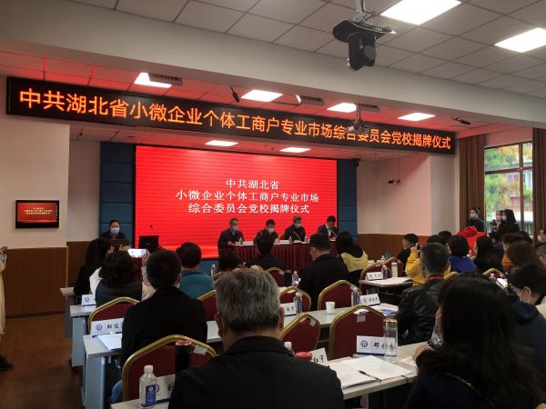 会上,举行了中共湖北省小微企业个体工商户专业市场综合委员会党校成立揭牌仪式。