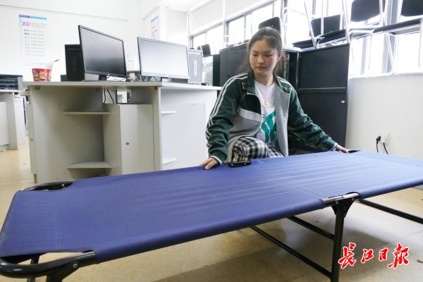 为了取得好成绩,备赛期间马烨琳中午就睡在实训室里。 记者詹松 摄