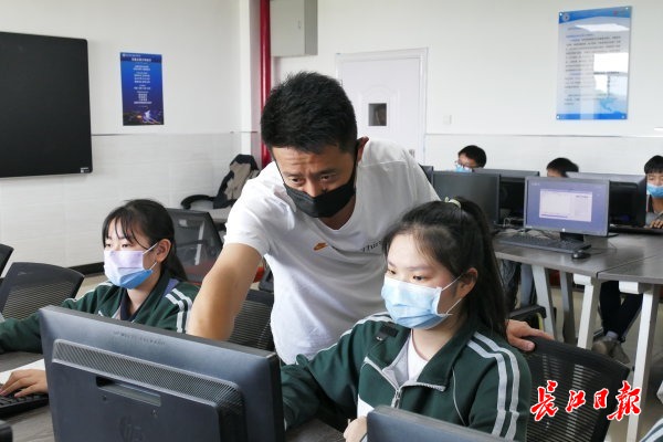 马烨琳在老师的指导下进行电脑软件操作。 记者詹松 摄