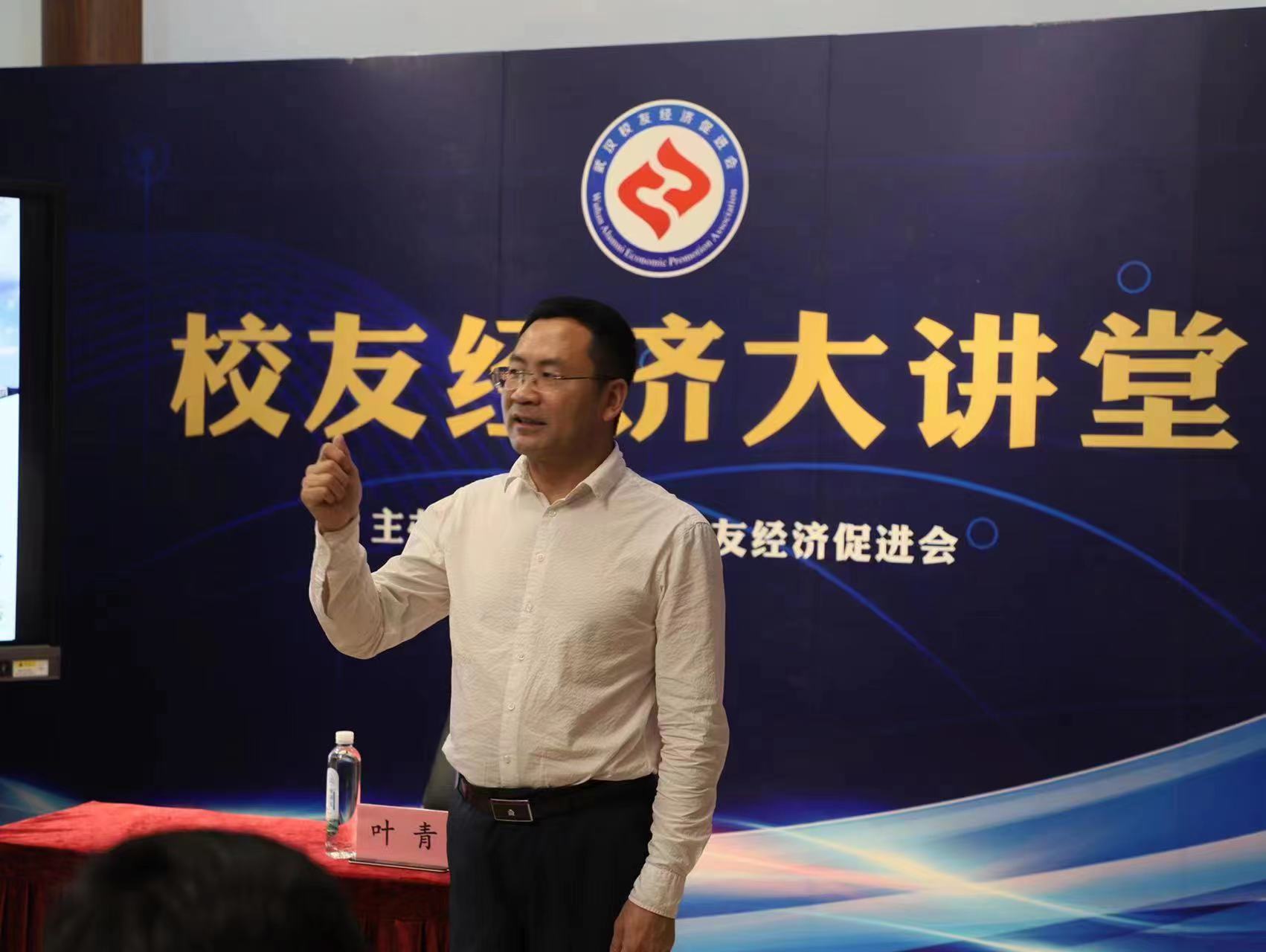叶青教授以《湖北三圈的投资机遇》为主题进行了开讲的第一讲。图片由武汉市校友经济促进会提供