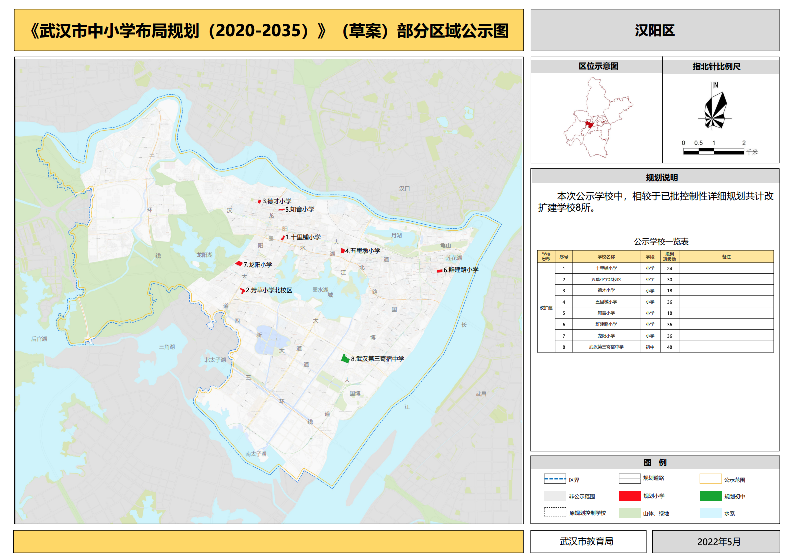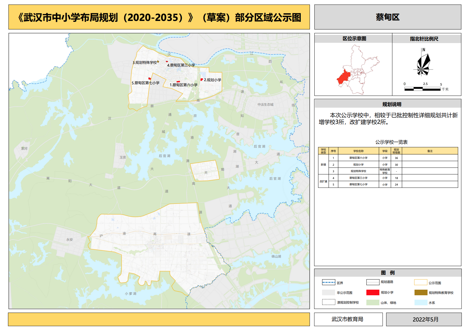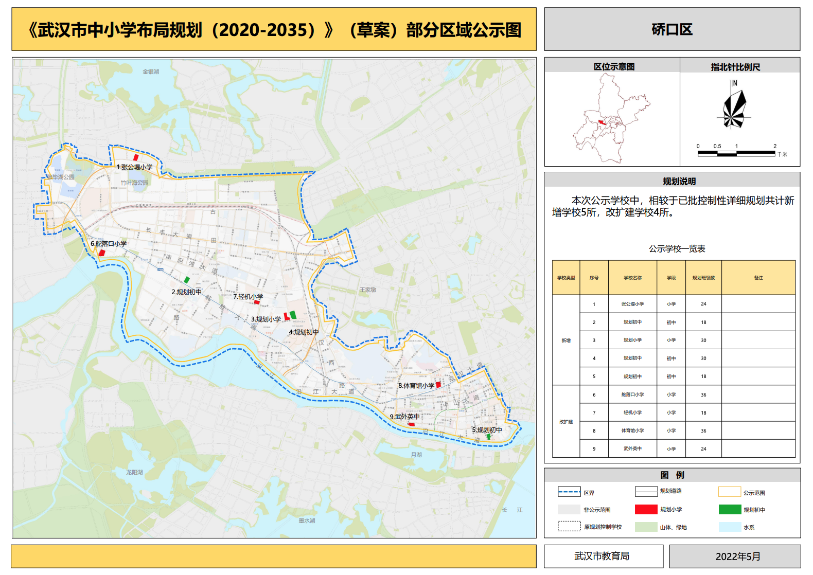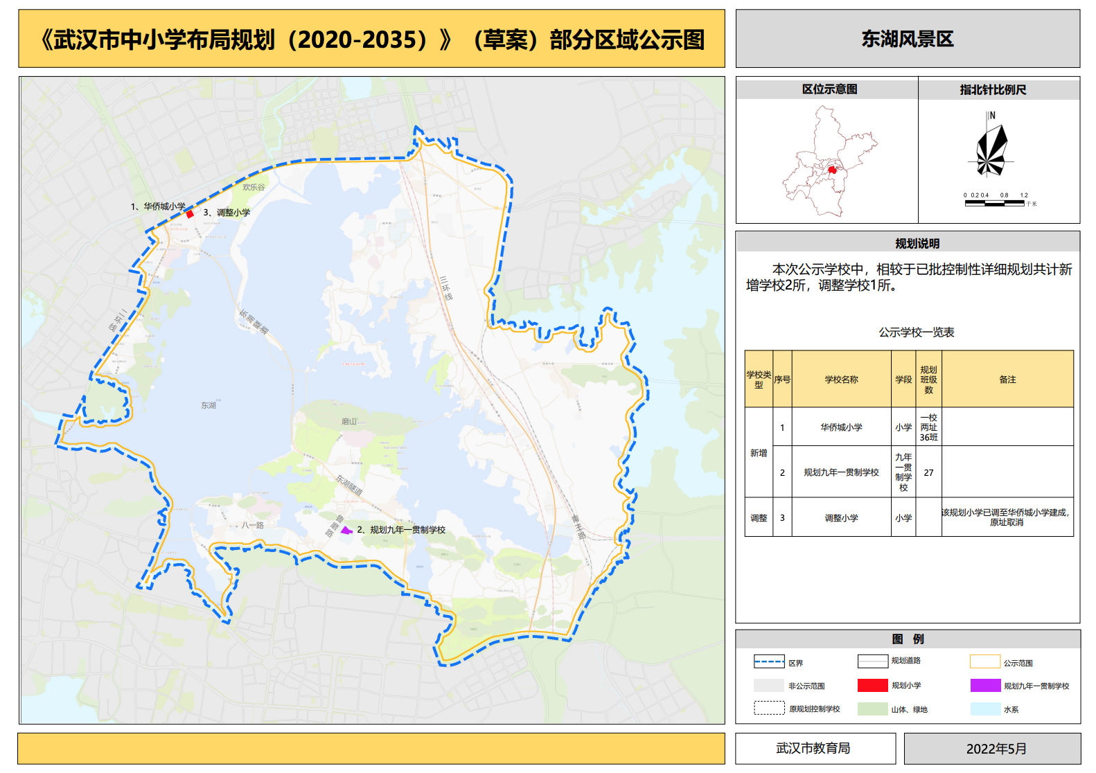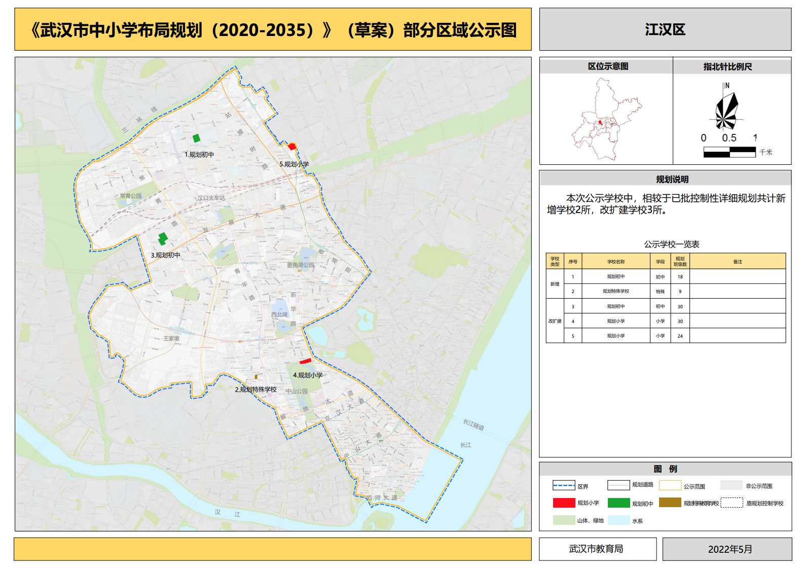 《武汉市中小学布局规划(2020—2035年)》(草案)结合了《武汉市国土空间总体规划(2021—2035年)》(草案)的相关要求,在原编制《武汉市普通中小学布局规划(2013—2020年)》基础上组织编制而成。本次批前公示范围为《武汉市中小学布局规划(2020—2035)》(草案)部分区域,其他区域由于相关规划正在调整,不纳入本次公示范围。