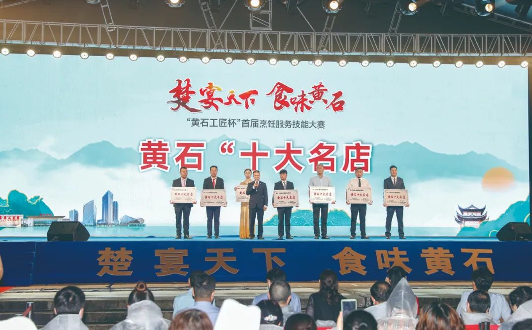 22日晚,“黄石工匠杯”首届烹饪技能大赛暨“十大名菜 十大名店 十大名厨 十大餐饮服务明星”评选活动颁奖晚会在黄石市人民广场举行,标志着2022黄石饮食消费展顺利落下帷幕。