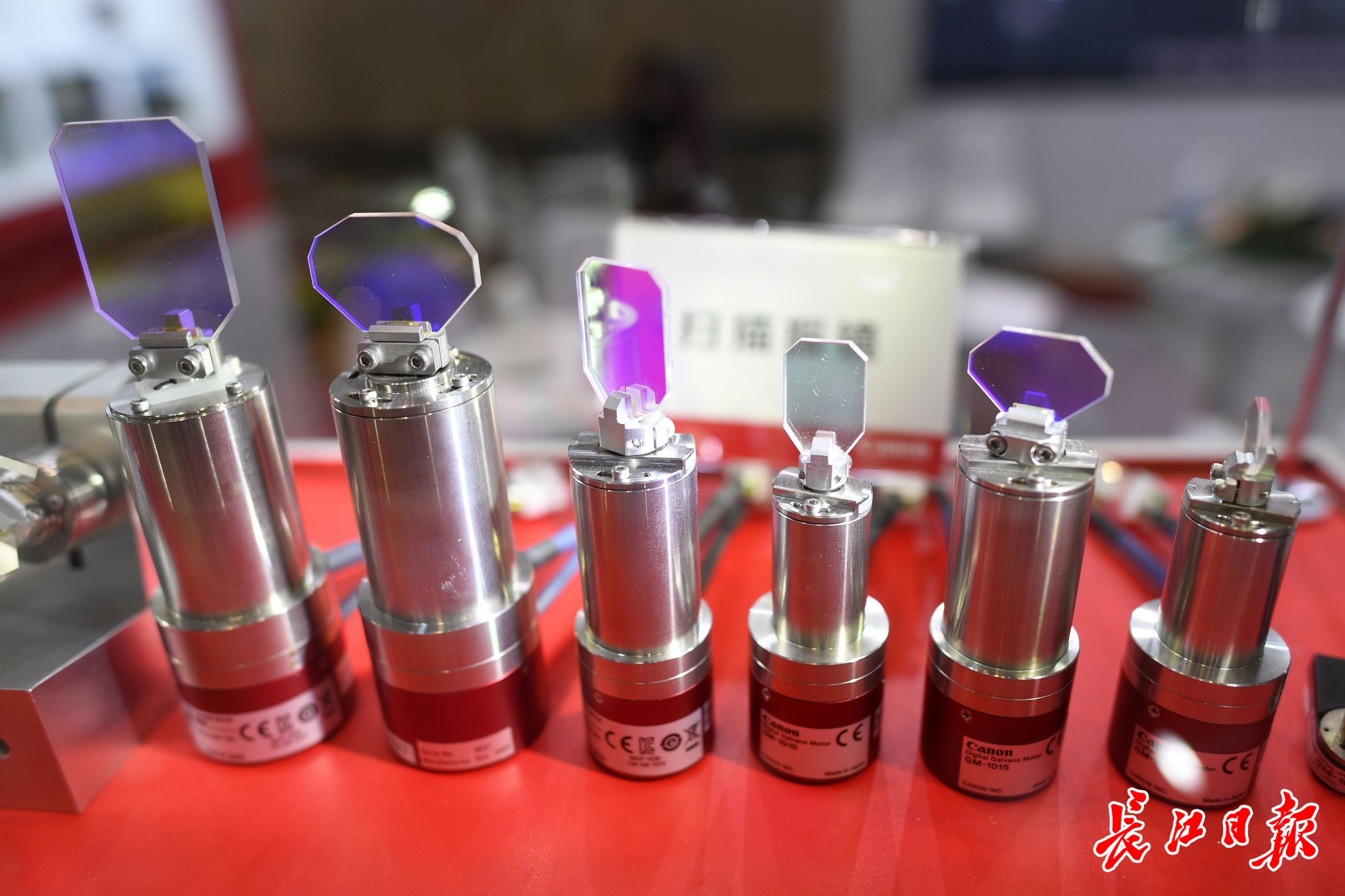 佳能展台前的各种扫描振镜,用于激光打标、舞台灯光控制、点阵激光医疗美容行业等。
