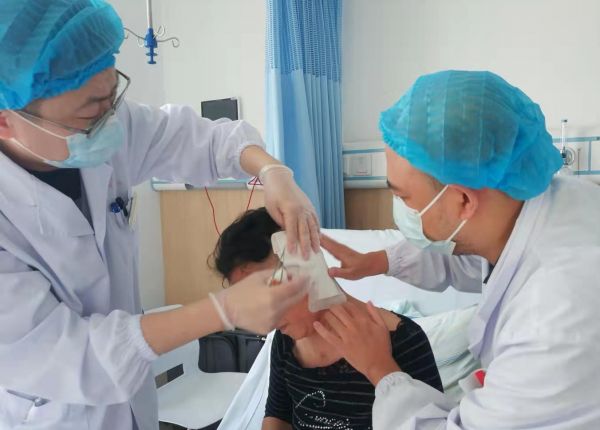 医生在为患者换药。