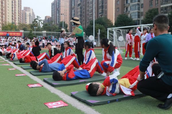 本次运动会以班级为单位进行测试,有50米短跑、坐位体前屈、一分钟跳绳、仰卧起坐、50米往返跑个人项目和50米×30的迎面接力集体项目;还有30秒跳绳、持球接力、车轮滚滚的教师趣味运动项目。针对各类项目,各班学生早早地做好了训练计划,铆足了劲要在运动会上提高自己的各项运动成绩。