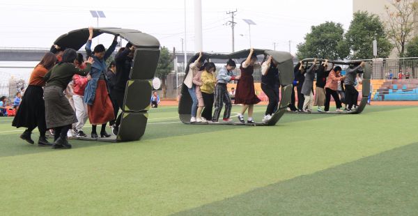 老师们也进行了趣味运动会,和孩子们一起“动起来”:车轮滚动向前,考验的是团队协作;端球接力赛跑,考验的是速度与协调性;30秒跳短绳,考验的是全身的协调与灵敏性。