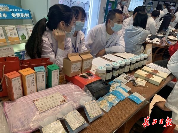 门诊大厅展示中医药养生保健产品。 长江日报见习记者汪涵 摄