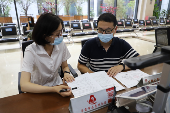 武汉经开区行政审批局工作人员为企业介绍“一证多址”政策。通讯员陈影 摄