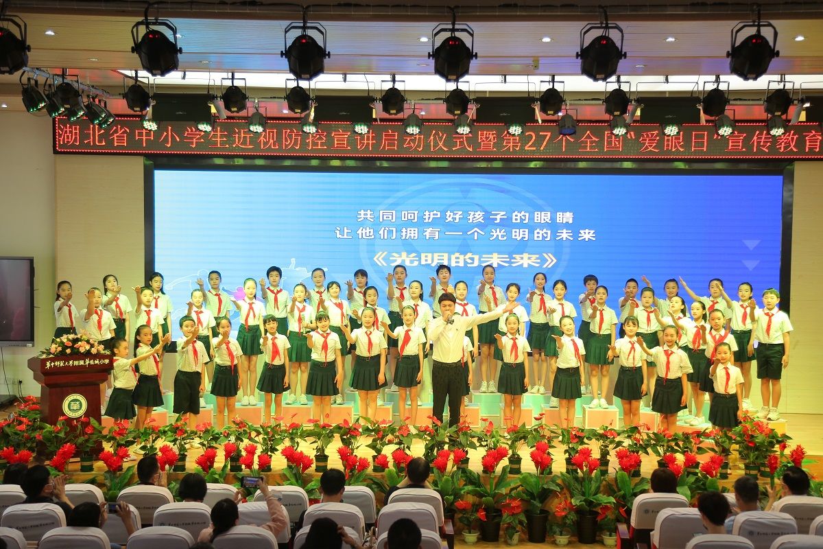 2022年6月6日是第27个全国“爱眼日”。5月29日,由湖北省教育厅主办、武汉市教育局承办、武汉市青少年视力低下防制(预防控制)中心协办的湖北省中小学生近视防控宣讲启动仪式暨第27个全国“爱眼日”宣传教育活动在武汉华侨城小学举办。来自武汉、咸宁、宜昌、孝感、荆州等在视力健康及近视防控工作上表现突出的地区及单位,以及湖北省中小学生近视防控宣讲团成员代表等参加活动。