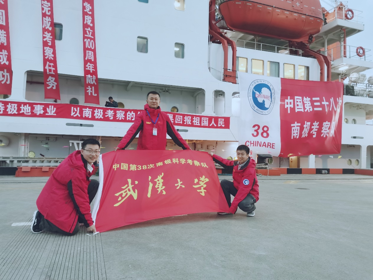 武汉大学校友南极科考再相聚(左起郑雷、张汝诚、邢喆)。校方供图