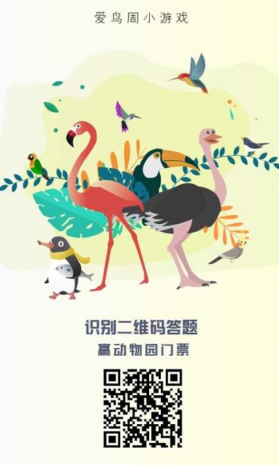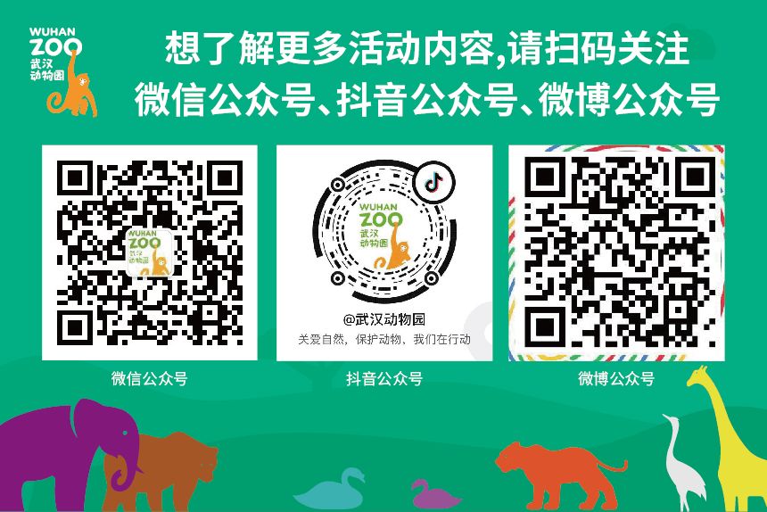 爱鸟周期间(4月1日至7日),关注武汉动物园官方微信、抖音、微博,玩爱鸟小游戏,将游戏分数截图发送到动物园微信后台。每天测试最高分前3名,每人可获得2张动物园门票。结果请关注武汉动物园微信通知,门票兑换截止日期为2019年6月30日。