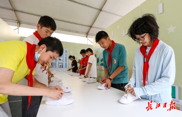 长江日报大武汉客户端5月31日讯 2022年5月31日,硚口区同济附小,孩子们迎来了五彩斑斓的“六一”儿童节。穿鞋带、合作套被子、巧手折纸杯、垃圾分类人人行……丰富多彩的活动让同学们完成劳动实践体验。