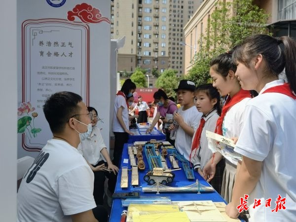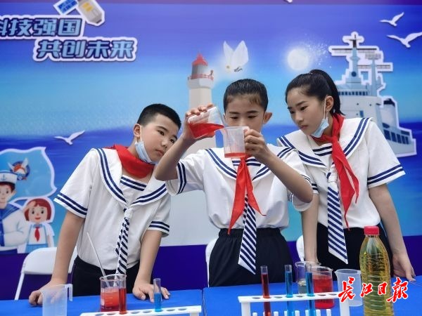 在“硚·乐”展区里,来自东方红小学的师生们以“东方少年创未来”为主线,融合现代科技与传统文化,打造了三个体验活动:“天宫”同上一节课——科技互动体验;小海军创未来——海模创客体验;百草园手指画——传统中医药文化体验,引领学生感受科创未来的爱国情怀。