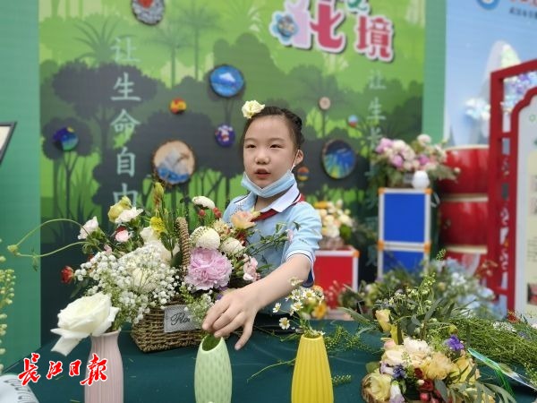 一双巧手“绣”童心,在硚·境体验园区,紫润小学的学生代表身着汉服飞针走线,优雅的兰花、活泼的锦鲤在她们的巧手下变得活灵活现。小伙伴们驻足静赏,生怕说话的声音大了惊走了鱼儿和蝴蝶。该校六(3)班学生朱逸潇说,黄梅戏和苏绣都有着悠久的历史,是该校的两张文化名片。从五年级起,她就加入了学校的苏绣社团,每周五定期开展活动,平日她也会加紧练习。近两年来,她熟练掌握了掺针、缠针、平针等多种针法,学会了绣荷包、扇面。她觉得做一名小非遗传承人非常有意义。