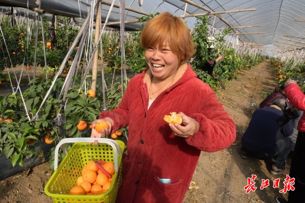 长江日报大武汉客户端11月12日讯 12日,在东西湖区东山街前进大队,占地400亩的武汉柑香源农业合作社的特色柑橘(红美人)喜获丰收,亩产2500斤,亩产值2万元到3万元左右,该合作社现已带动周边村民100多人增收致富。当天,许多市民自驾前往果园采摘,体验汉产柑橘的美妙滋味。