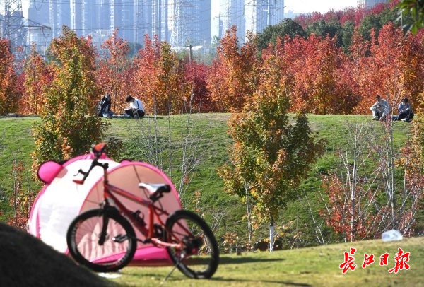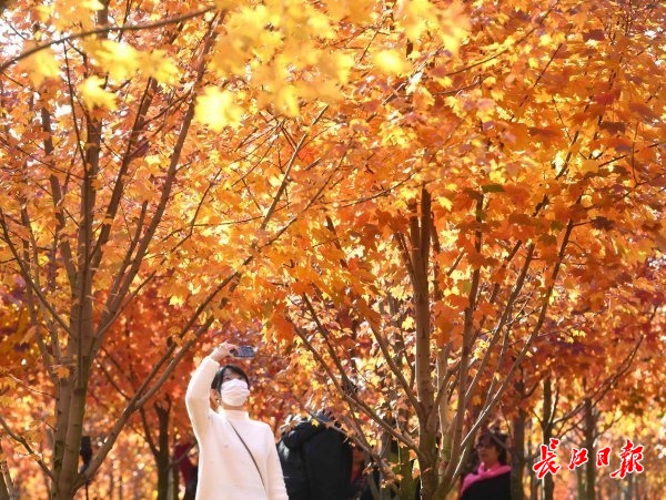 长江日报大武汉客户端11月14日讯 11月14日,文华学院层林尽染,数千棵红枫树的叶子正红火起来,形成一道靓丽的“枫”景线,人们漫步红枫林中尽享冬日最绚丽色彩的“黄金时代”。(记者高勇 摄影报道) 【编辑:张玲】