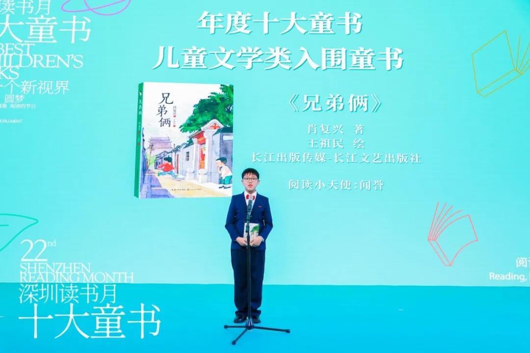 长江日报大武汉客户端11月16日讯(记者万建辉 通讯员盛天乐夏萍)2021深圳读书月“年度十大童书”11月13日在深圳书城中心城揭晓,由长江文艺出版社出版的长篇成长小说《兄弟俩》入围深圳读书月“年度十大童书”。