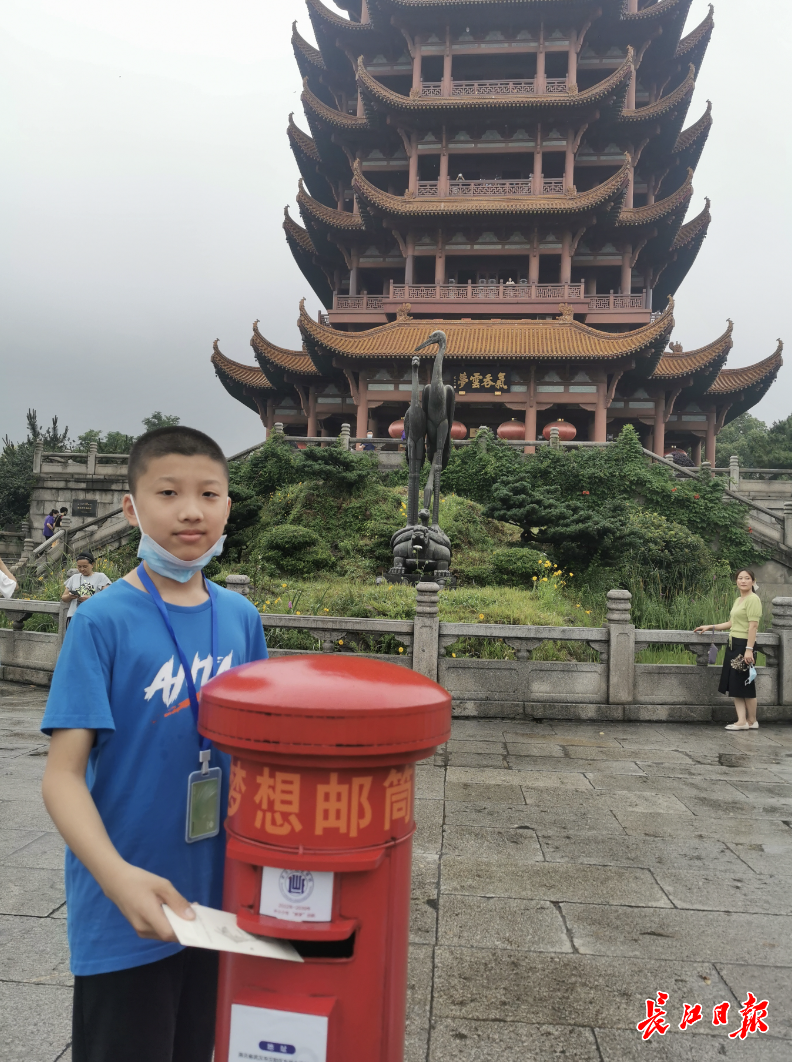 青山区红钢城小学六(二)班的袁思远也带来了自己的梦想信件,“站在黄鹤楼脚下,投递自己的梦想,也许会更容易成真”。记者何晓刚 摄