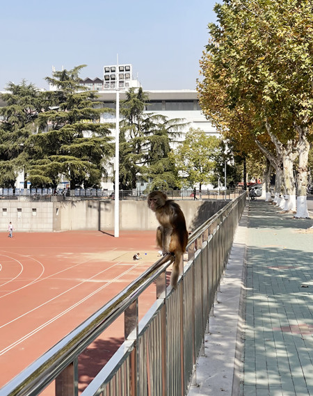 11月16日中午,中国地质大学(武汉)里迎来一位可爱的动物朋友——一只猴子出现在南望山校区的操场上。