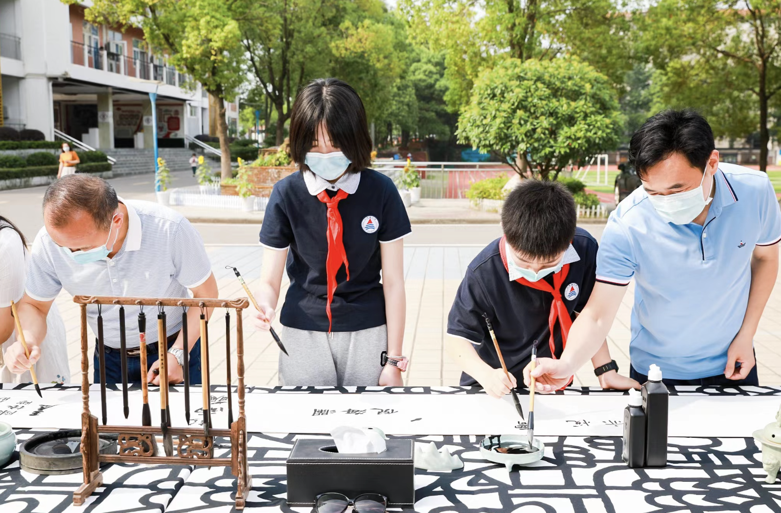 参展师生以笔会友,现场书写。