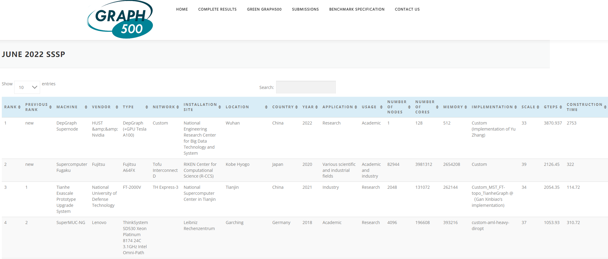此次打破世界纪录的图计算机DepGraph,由华中科技大学张宇副教授和赵进博士主持研发,他们带领的图计算团队经过长年深入研究,在图计算加速器和图计算系统软件的多个关键技术上取得突破。在去年公布的第23届Graph 500排名中,图计算机DepGraph就已经登顶。而在此次排名中,DepGraph Supernode性能超过日本“富岳”等超级计算机,蝉联全球第一并打破世界纪录。