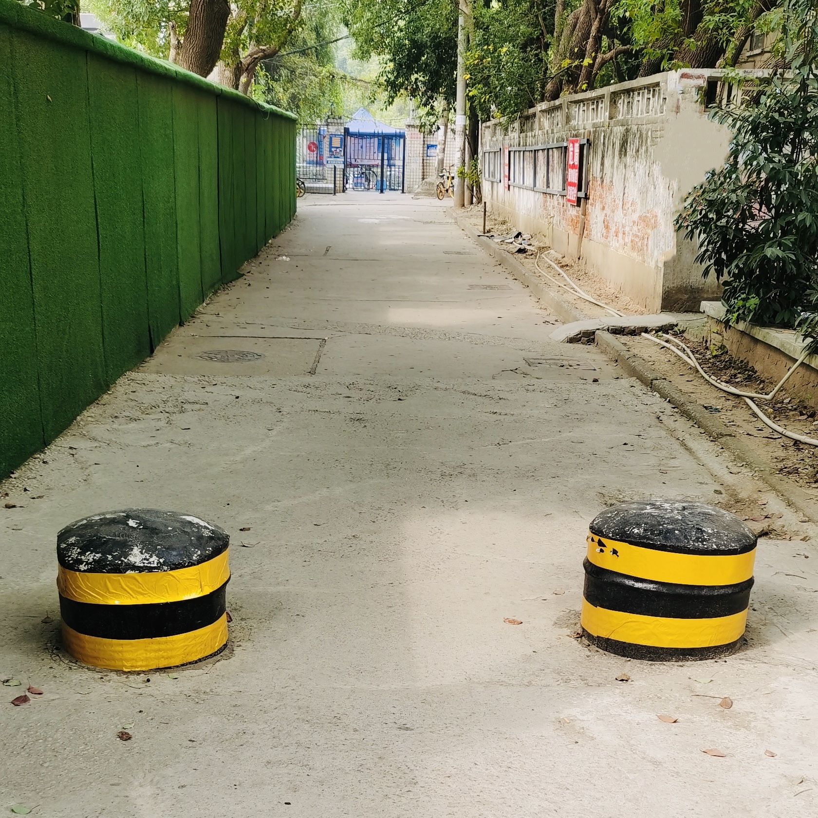 整修后,露头的钢筋被切割,石墩上还安装了黄黑色警示条。 通讯员钟丽芳 摄